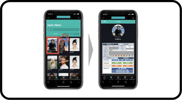 希望する特性に合った学生の検索も可能。