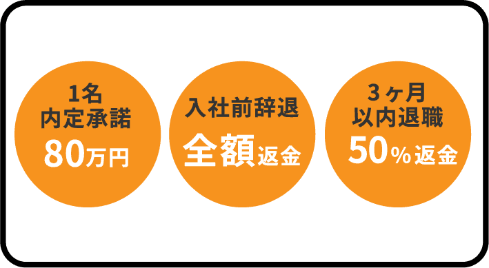 いたします。さらに、入社後3か月以内に紹介者が退職した場合には、お申し出いただくことで成果報酬の50%を返金いたします。